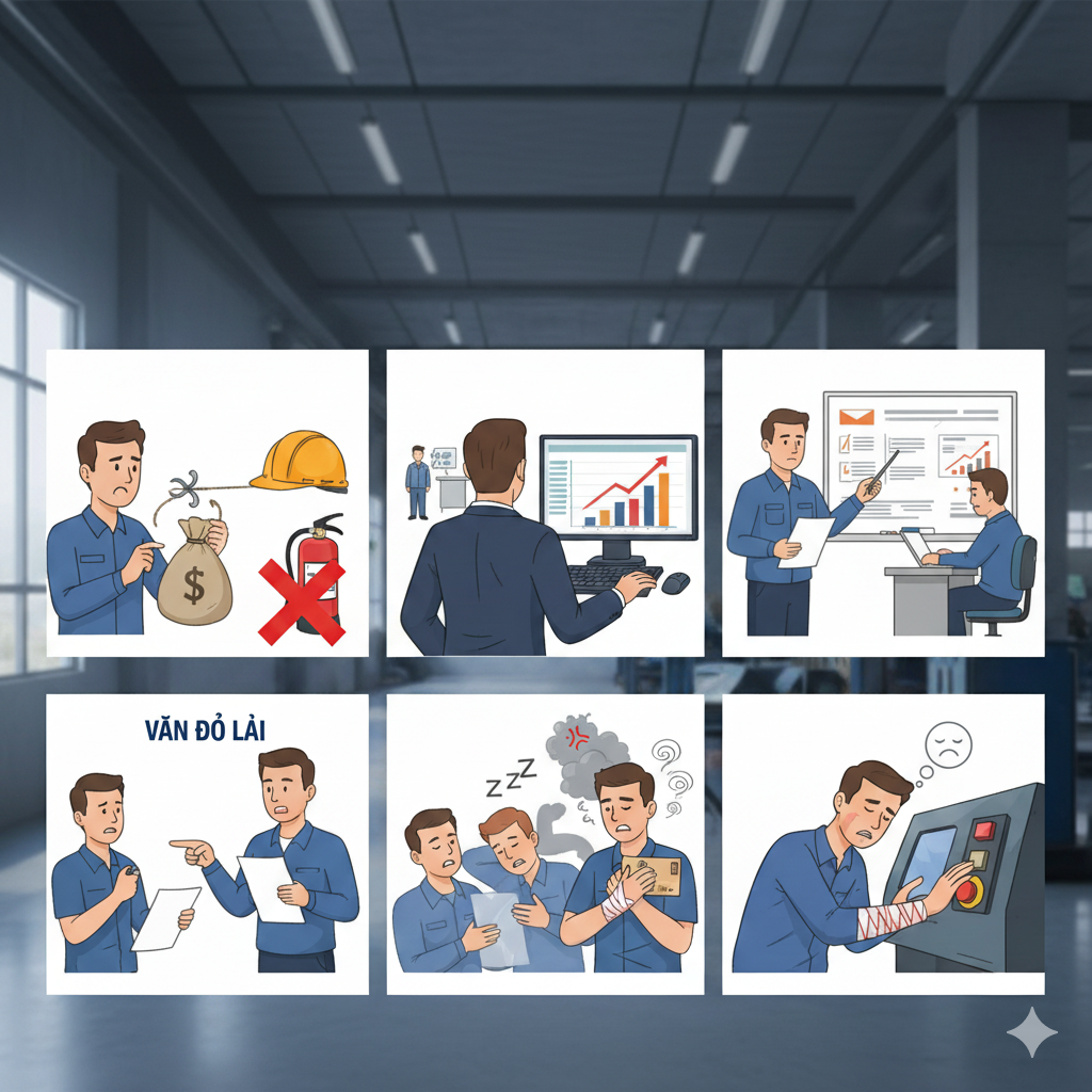 - Vấn đề: Nhiều doanh nghiệp xem việc đầu tư vào thiết bị bảo hộ cá nhân (PPE), huấn luyện an toàn lao động hay các hệ thống an toàn là chi phí phát sinh, tìm cách cắt giảm.