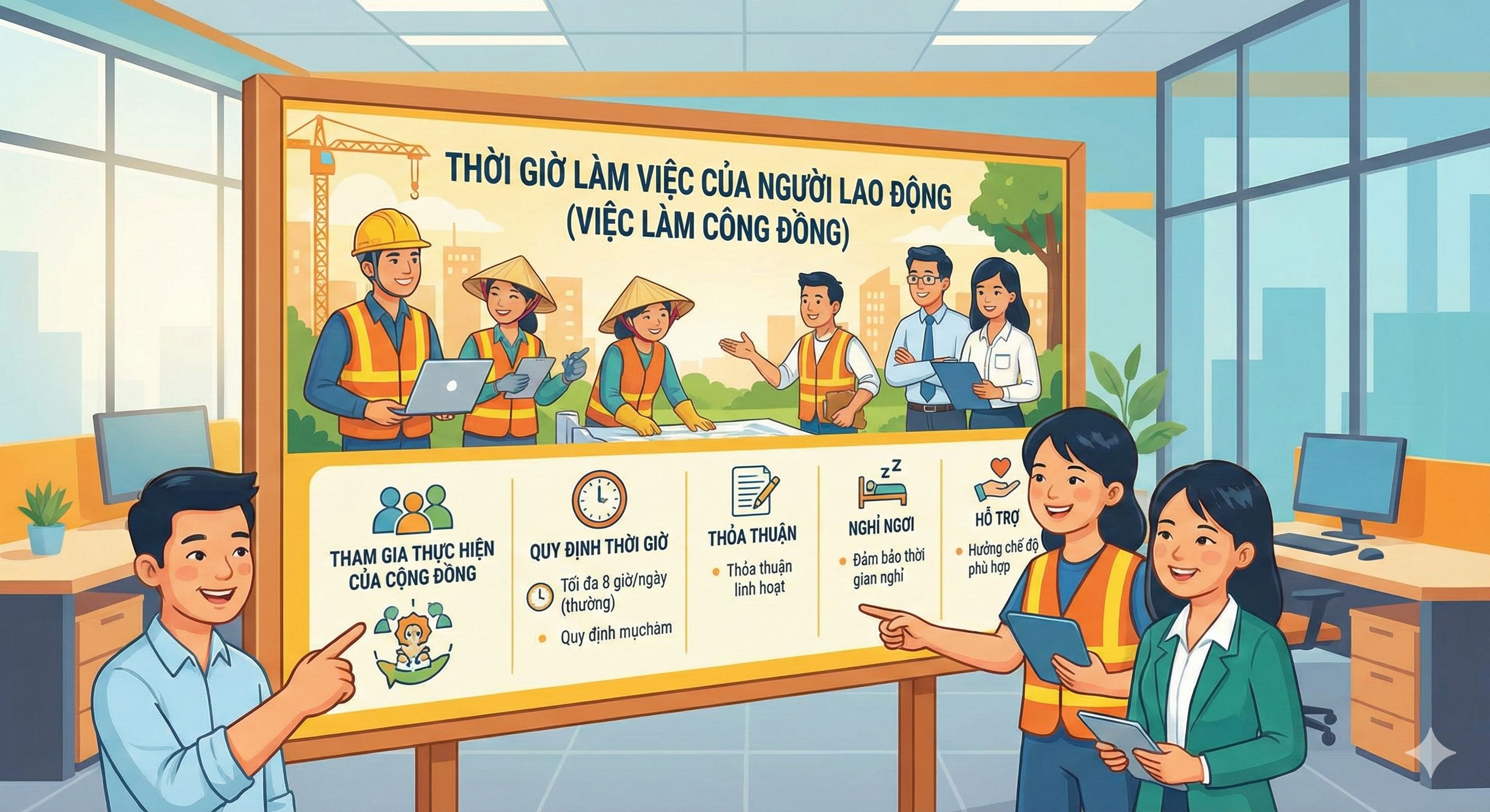 Thời giờ làm việc, thời giờ nghỉ ngơi của người lao động tham gia việc làm công theo hình thức tham gia thực hiện của cộng đồng